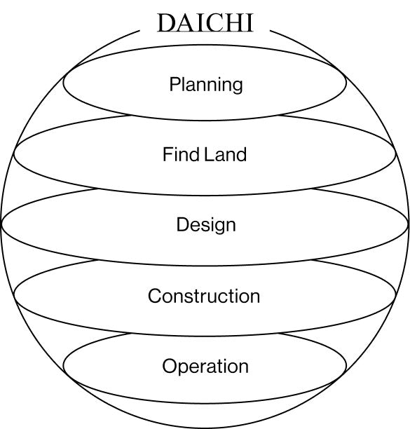DAICHI is a company that plans, develops, and operates accommodations, commercial facilities, spas, saunas,